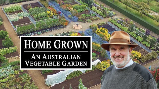 There can be few pleasures greater than picking home grown vegetables from your own garden. Master gardener David Glenn takes you on a tour around his kitchen garden showing how to be self-sufficient in vegetables. From asparagus to zucchini David Glenn grows enough produce to feed himself, his wife artist Criss Canning and their large extended family. (They have eleven grandchildren.)David’s vegetable garden, set in the world renowned Lambley Nursery Gardens in Central Victoria, is as beautiful as it is productive. Even though the climate can be very difficult with temperatures ranging from -8C to 45C. Frosts can occur as early as mid-April and as late as mid-November.